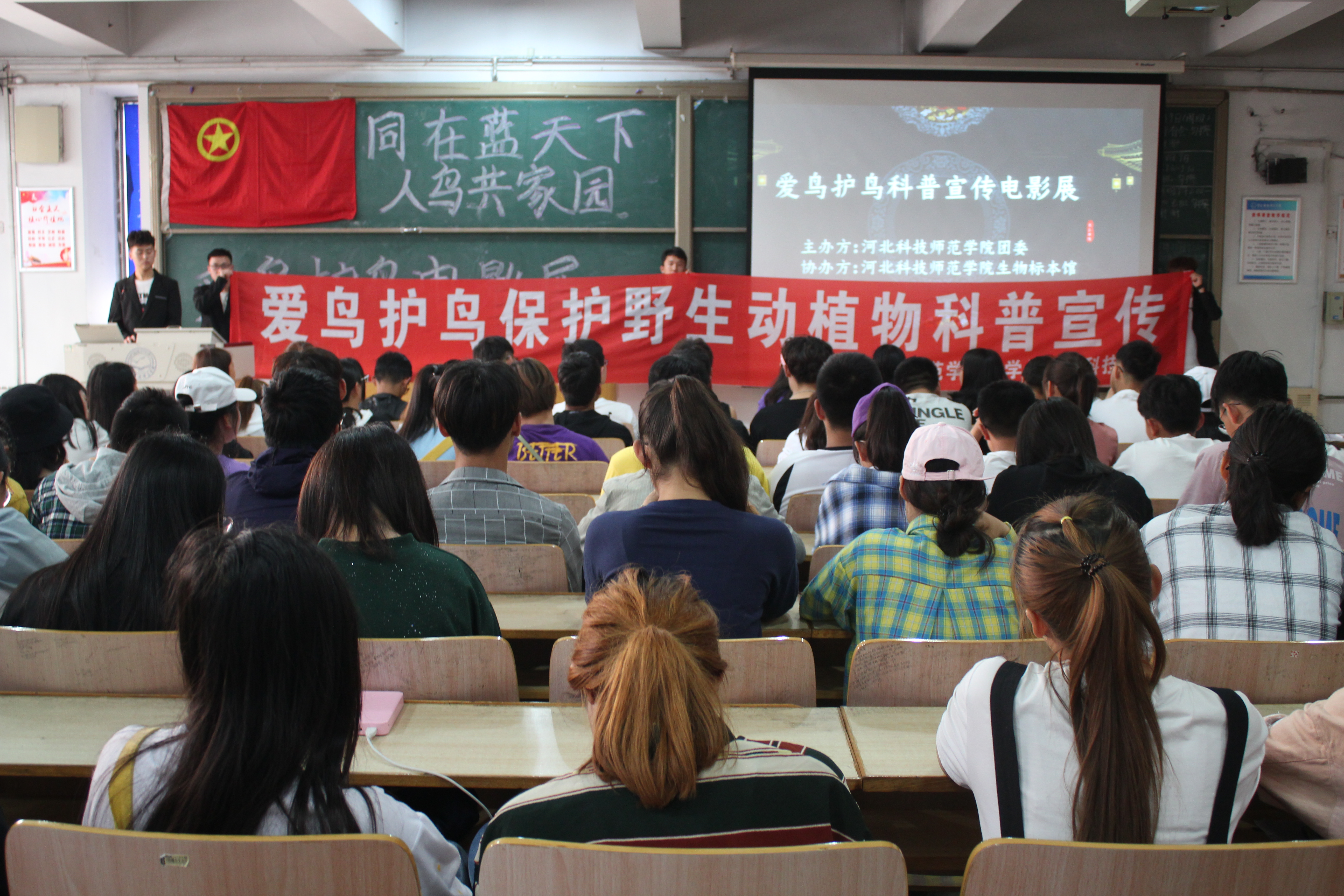 5月11日,由kaiyun官方登录入口主办、学校生物标本馆承办的“同在蓝天下,人鸟共家园”鸟类电影展在昌黎校区热播,题材选自人文地理纪录片《人与自然》中以“保护鸟类”为主题的《鸟类生活》系列影片。100名来自相关专业的学生参加了观影活动。