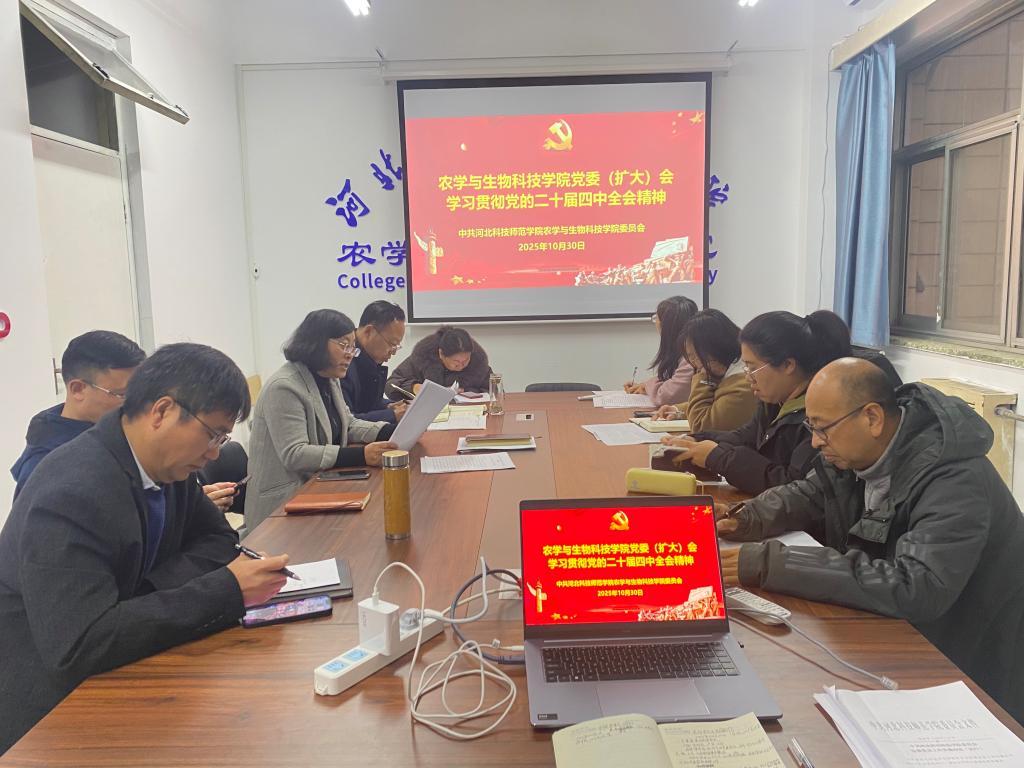 会议强调,党的二十届四中全会作为承前启后的重要会议,系统擘画了“十五五”时期发展蓝图,对全面推进强国建设、民族复兴伟业具有重大而深远的意义。全会强调的“加快高水平科技自立自强,引领发展新质生产力”“统筹教育强国、科技强国、人才强国建设”等部署要求,为农业高校学科发展、人才培养和社会服务工作提供了根本遵循。学院全体党员干部要把学习贯彻全会精神作为当前和今后一个时期的重要政治任务,切实将思想和行动统一到党中央决策部署上来。