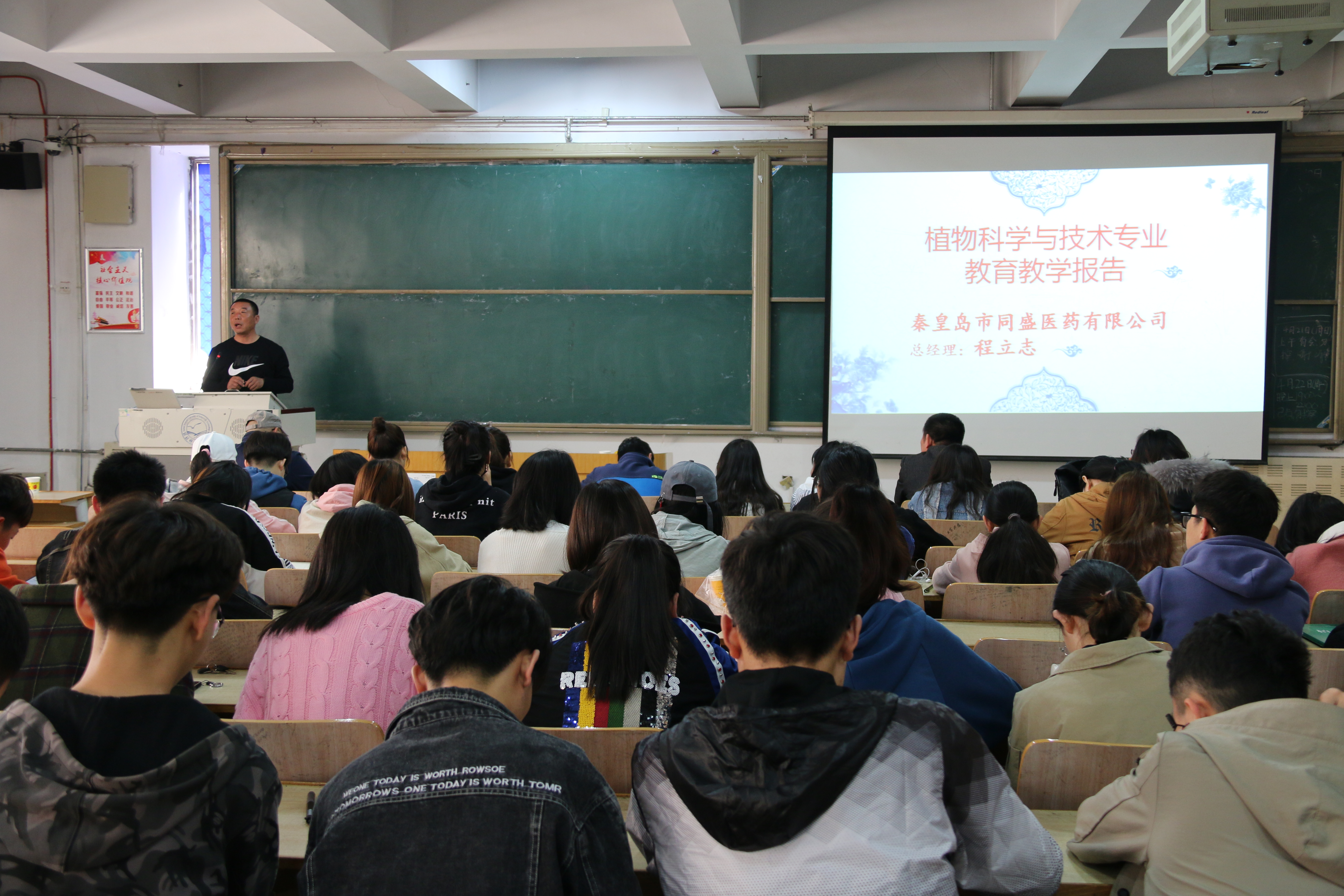 2019年4月21日,kaiyun官方登录入口邀请秦皇岛市同盛医药有限公司总经理程立志来我校作题为“中药材发展与人才能力需求”的教育教学报告,植物科学与技术专业、植保专业200余名学生听取了报告。