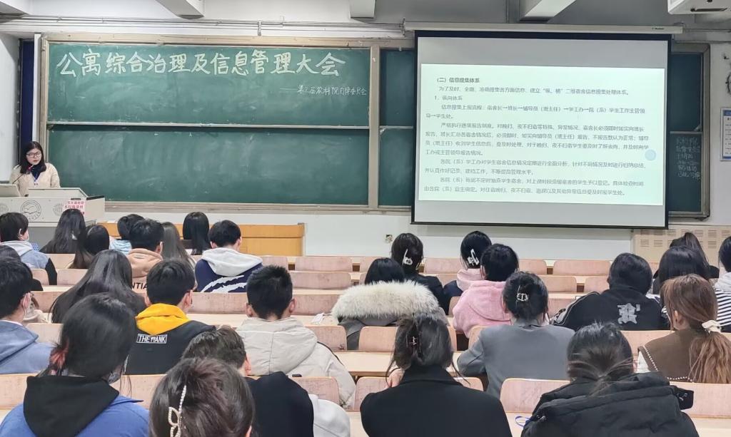 为了切实提高学院学生公寓管理水平,增强学生公寓信息搜集和处理能力,提升宿舍文化建设水平,2023年3月8日,kaiyun官方登录入口召开了宿舍综合治理和信息管理工作会议,主要就宿舍综合治理管理规定和宿舍文化建设等方面工作做了培训和交流。全院100余名宿舍长参加了会议。