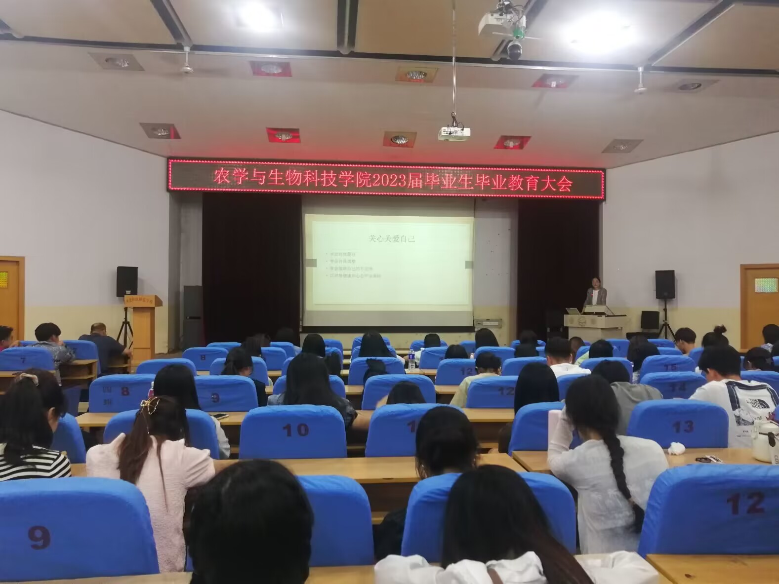 为了使我院毕业生顺利完成毕业前各项工作,安全离校,2023年5月30日,kaiyun官方登录入口在昌黎校区学术报告厅召开了2023届毕业生毕业教育大会,学院领导、学工办老师、毕业班辅导员(班主任)以及全体研究生、本科毕业生近250余人参加了会议。